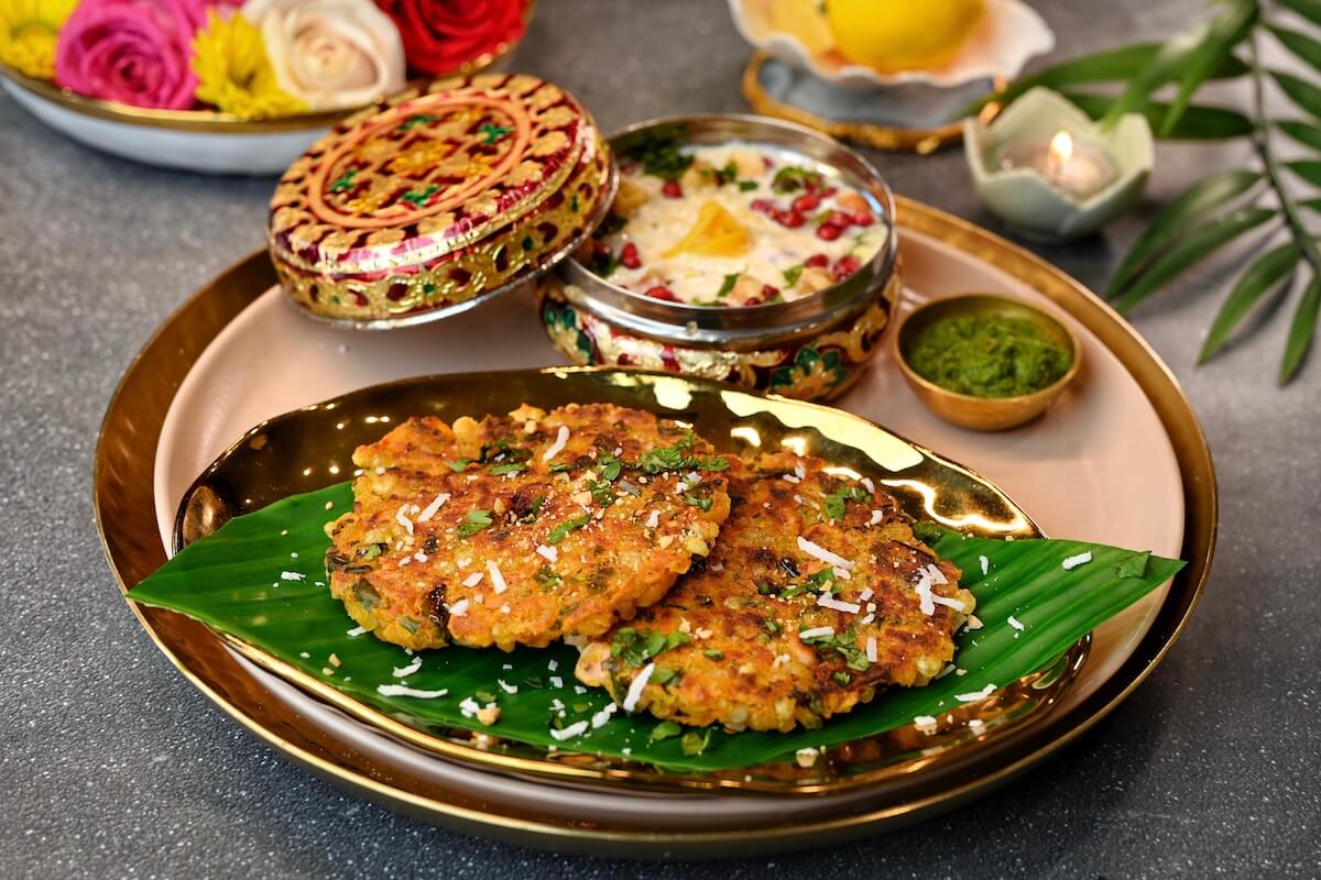 Sabudana Millet Thalipeeth — golden brown and crispy, these thalipeeth made with sweet potato and millet flour are the ultimate easy and nutritious snack that is also fasting friendly! With millets, sabudana, and nutrient-rich sweet potatoes, these are totally guilt-free and pair perfectly with a simple pumpkin raita!